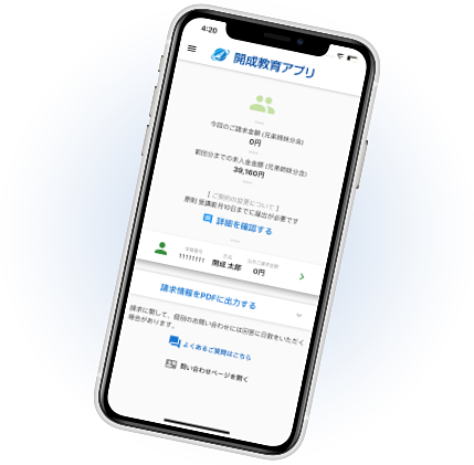 2020年4月より、塾での授業の報告や成績情報、請求情報や開成教育グループからのお知らせなど、確認したい情報をお手持ちのスマホで確認できるアプリ『開成教育グループ会員サイト』の運用を開始します。